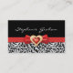 Black white damask pattern with red bow and jewel business card