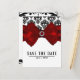 Black & White Damask Red Bow Glam Save the Date Announcement Postcard