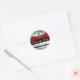 BLACK & WHITE DAMASK RED RIBBON MONOGRAM Gemstone Classic Round Sticker