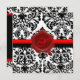 BLACK & WHITE DAMASK, RED WAX SEAL MONOGRAM SILVER INVITATION