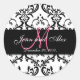 ink Black and White Damask Save the Date Stickers with Monogram and Bride and Groom Names and Wedding Date. Customise with Your Names, monogram and date. Elke Clarke©