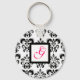 BLACK WHITE DAMASK SQUARE PINK FUCHSIA MONOGRAM KEY RING