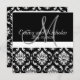 Black and White Damask Wedding Invitation and RSVP card combined with place holder to write guest' name right on invitation. Design by Elke Clarke©2010. Grey monogram initial with white script font text overlay on a black background. Place holder for guest name is on the back which you can write in by hand with a silver or gold metallic pen (so it shows up on the black background). Or take advantage of the fact that you can order your invitations one at a time, so you can use the Zazzle edit menu to add your guest' name and have it printed right on the invitation. So for 10 guests you would have 10 orders of "1" in your cart, each with a different guest name in the design. Customise with your wedding information and colours.