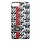 Black white damask and stylish red band with initials personalised girly custom iPhone 6 case. There is a red stripe from top to bottom of the case and a rectangle with your initials. Personalise this case template and add you monogram or text.