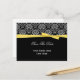 Black White Damask Yellow Bow Ribbon Save The Date Announcement Postcard