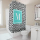 Black White Diagonal Greek Key Turquoise Monogram Shower Curtain