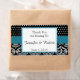 This beautiful and elegant design, called Black and White Dots and Damask Wedding, has a beautiful Vintage inspired design. The background is black with white polka dots on the top and a white damask pattern on the bottom. Across the centre there is a beautiful blue stripe to separate them. Centred, there is a white text box with a blue border. Perfect for a vintage style or opulent wedding. Please email me for matching designs and products or with custom requests at noteableexpressions@gmail.com. This set has invitations, save the date cards, response cards, thank you cards, table number tent cards, envelope seals, wine labels, binders, return address labels and more available. Use the envelope seal stickers for any of your DIY gifts - these are available in both large and small sizes! All elements are printed on our high quality products, they do not include any real gold, jewels, embossing, or other textile elements. All designs are copyright Noteable Expressions, Inc. All rights reserved.
