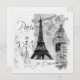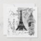A black and white collage of Paris landmarks and familiar sights. The Eiffel Tower and the Arc de Triomphe are prominent. Also you see a vintage street lamp and French words.