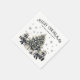At the bottom of the design sits the detailed artwork—a black and white Christmas tree with a subtle green hue, surrounded by wrapped presents and delicate falling snowflakes. The clean watercolor style and minimalist layout make this napkin a stylish and timeless addition to your holiday celebration.