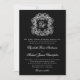 This formal black and white monogram wedding invitation features an elegant ornate vintage monogram crest with fancy script calligraphy for the initials of the bride and groom and their names. Find matching products in the collection, or message me through Zazzle Chat for more products and design tweaks.