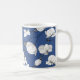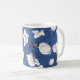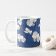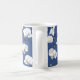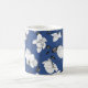 Elegant mug featuring a modern floral pattern with beautiful black and white stylised orchids on a trendy blue.
