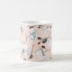 Elegant mug featuring a modern floral pattern with beautiful black and white stylised orchids on a delicate light pink background.