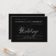 Classic understated white on black wedding invitation with a modern touch featuring the elegant script of the word "Wedding.