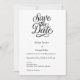 This black and white wedding safe the date invitation showcases elegant script lettering paired with refined serif typography, creating a harmonious and timeless layout. The visual contrast between flowing calligraphy and minimalist type offers understated charm with a modern finish. Designed for couples who appreciate classic design with personality and precision.