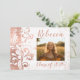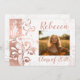 Pretty photo graduation announcement with white background with fancy stunning white curling swirls and scrolls. Pretty, girly yet classy and formal style. High contrast black and white adds the perfect touch.