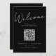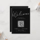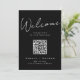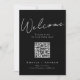 This modern, minimalistic wedding welcome sign features an elegant script front. The sign includes a digital seating chart with a QR code. The design plays with the simplicity of a black and white typography design. It's the perfect choice for couples who appreciate clean and modern elegance.