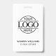 Enhance your professional image with this Black and White Employee ID. This sleek badge features a custom logo, name, and title for a polished look. Perfect for businesses seeking a stylish and cohesive identity.
