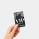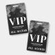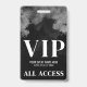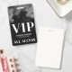 All Access Elegant Silver VIP Badge. This design features a faux silver metallic top with white fonts, paired with a black and white layout for a modern and stylish look. Perfect for concerts, fashion shows, conferences, speakers, or parties like a sweet 16 or New Year’s Eve celebration. A bold serif font at the bottom mixes with simple typography to display VIP, the event name, date, and “All Access Pass.” All text and colours can be customised.