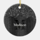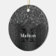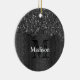 Black white faux sparkles rustic wood Monogram Ceramic Ornament