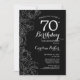 Black White Floral 70th Birthday Party Invitation. Minimalist modern design featuring botanical outline drawings accents and typography script font. Simple trendy invite card perfect for a stylish female bday celebration. Can be customised to any age. Printed Zazzle invitations or instant download digital printable template.