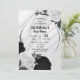 romantic black and white flowers and grey leaves on marble background botanical geometric birthday party invitation