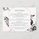 Designed to coordinate with our "Black & White Flowers Wedding" collection, this trendy graphic contemporary wedding enclosure card is fully personalizable with all of your wedding details, such as reception, transportation, accommodation, or any other needed information, in elegant grey serif fonts inside a golden geometrical frame over a romantic black and white flowers botanical illustration background for a modern look.