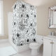 Black White Floral Initial Monogram Shower Curtain