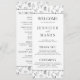 Delight in the rustic charm of black and white wedding menu cards featuring exquisite flower blooms and enhanced by delicate, simple text. Elevate your wedding dining experience with this charming touch.