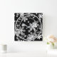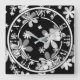 black white floral square wall clock