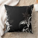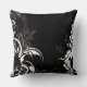 Black White Floral Swirls Graphic Throw Pillow