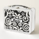 Black White Floral Swirls Pattern Personalised Metal Lunch Box