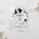 romantic black and white flowers and grey leaves on marble background botanical wreath bridal shower invitation