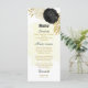 Romantic black & white flowers with gold leaves botanical wedding menu card.