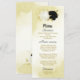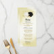 Beautiful wedding menu featuring black and white flowers and gold leaves . The gold glitter details are simulated.