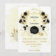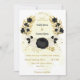 Romantic black & white flowers with gold leaves botanical wedding invitation