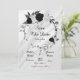 black white flowers grey leaves botanical wreath save the date