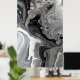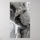 Black White Fluid Marble Abstract Grey Silver Poster