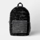 Stand out in style! Get your hands on our Black White Formulas Equations Graphics Math Printed Backpack today! Perfect for math enthusiasts and trendsetters, this sleek and functional backpack is designed to make a statement. Rock your love for math everywhere you go. Illustrated and designed by Patricia Alvarez