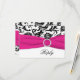 This black and white floral damask reply card has a hot pink PRINTED ON ribbon with a crystal jewels brooch on it that matches the wedding invitation shown below. If you require any other matching items, or would like it in another colour combination, please email niteowlstudio@gmail.com with your request.