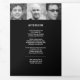 Simple modern graphic funeral program in black and white. Replace the sample text and twelve placeholder photos with your own special photos and memorial order of service, obituary, reading or poem, and acknowledgements, and personal information details. Other matching funeral keepsake remembrance items are available. Design by www.mylittleeden.com