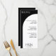 Black and white wedding reception menu card with colour block geometric arch. Elegant typography for an expensive look at an affordable price. Customise the meal list and personal details. Great for a modern minimalist wedding theme with a touch of style.