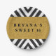 Black & White Geometric Gold Modern Party Plates. Customise with any text. Matching items are available.