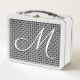 Black & White Geometric Initial Monogram Metal Lunch Box