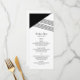 Modern and trendy Geometric Stripe Wedding Menu Card with a black triangle and thinly striped accent. This simple yet elegant menu card is set up to be easily customised with your wedding information. Find more customisation options by clicking Customise It.