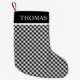 Modern black and white gingham pattern Christmas stocking. Simply add your name to this buffalo check, black and white chequered pattern Christmas gift stocking. If you need any help or matching products, please contact us through our store.