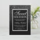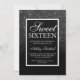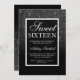 black white glitter elegant script chic Sweet 16 Invitation