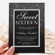 A modern, pretty chic and elegant faux black glitter shower ombre with black colour block Sweet 16 birthday party invitation with ombre pattern. Perfect for a princess Sweet sixteen, an elegant black and white theme.