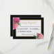 Black & White Glitter & Pink Roses Wedding RSVP Card