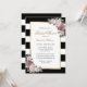 Complement your romantic wedding party with these elegant and modern black and white striped bridal shower invitations inspired by blush pink roses. Matching items available. Blush floral bridal shower invitations. Black and white bridal shower invitations.