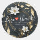 Black White Gold Floral Wreath Wedding Welcome Classic Round Sticker